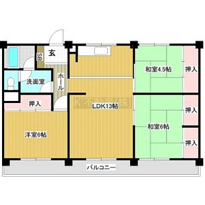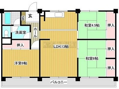 3LDK(71.28m²)└ LDK13帖 洋室6帖 和室6帖 和室4.5帖