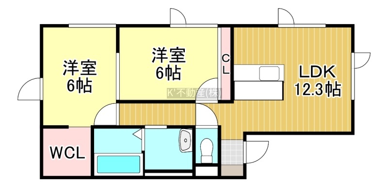 2LDK(58.38m²)└ LDK12.3帖 洋室6帖 洋室6帖