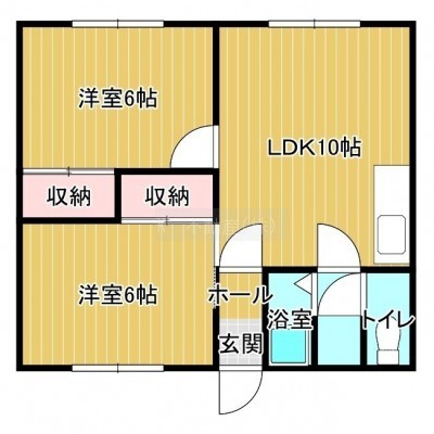 2DK(45.36m²)└ DK10帖 洋室6帖 和室6帖