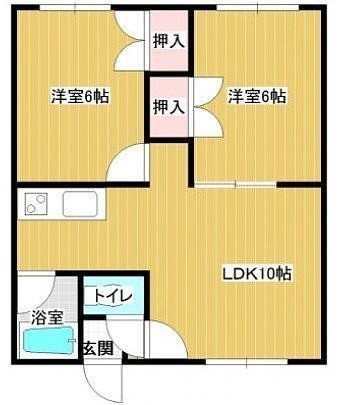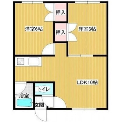 2DK(45.36m²)└ DK10帖 洋室6帖 洋室6帖