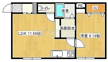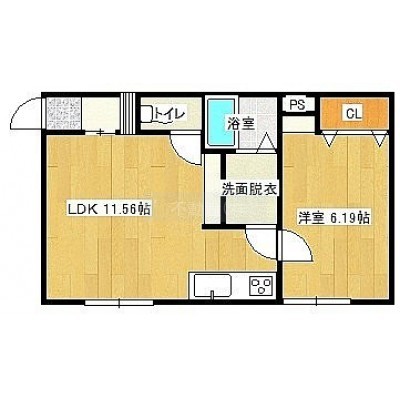 1LDK(40.99m²)└ LDK11.56帖 洋室6.19帖