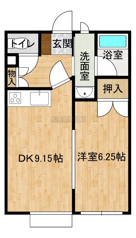1DK(35.54m²)└ DK9.15帖 洋室6.25帖