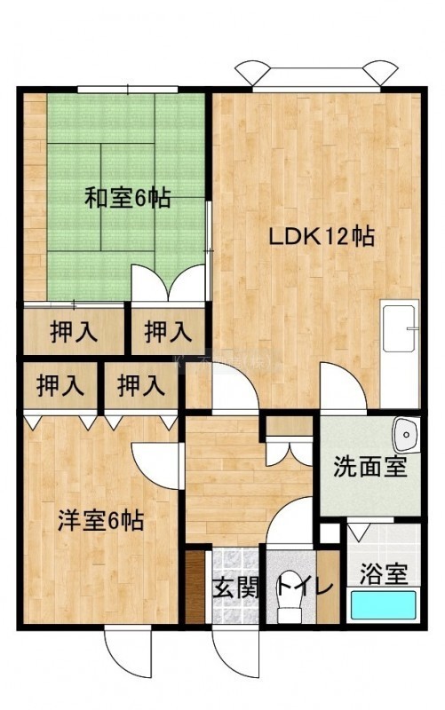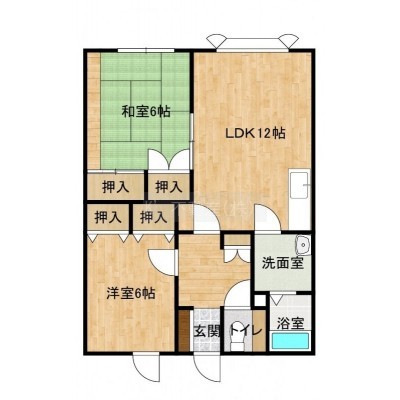 2LDK(61.45m²)└ LDK12帖 洋室6帖 和室6帖