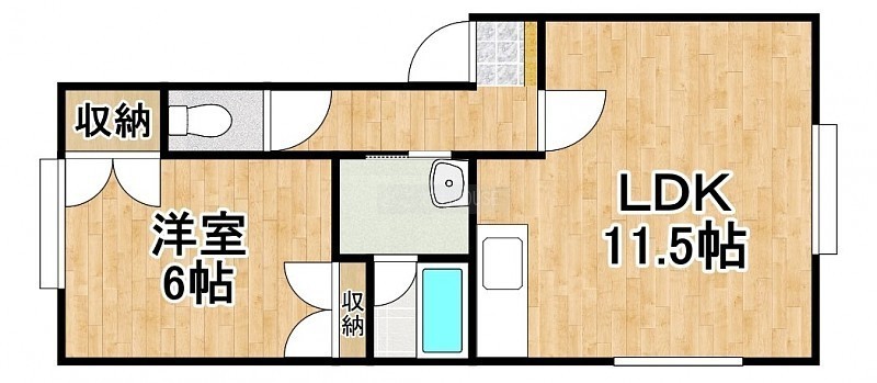1LDK(42.65m²)└ LDK11.5帖 洋室6帖