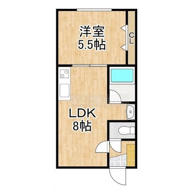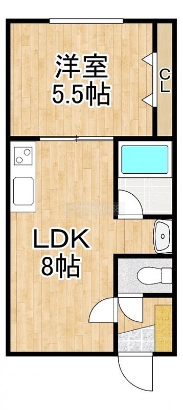 1DK(30m²)└ DK8帖 洋室5.5帖