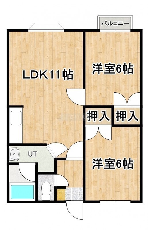 2LDK(49.61m²)└ LDK11帖 洋室6帖 洋室6帖