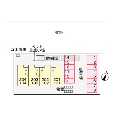 所在階/建物の階建 2階(201) / 地上2階建 総戸数 8戸 主要採光面 南東 構造 木造(2×4) 契約期間 2年間 更新料/更新手数料 2万2,000円 住宅保険 1万8,000円(2年間) 入居可能時期 2026年4月中旬 管理人 取引態様 仲介 物件No 設備・特徴 - 駐輪場