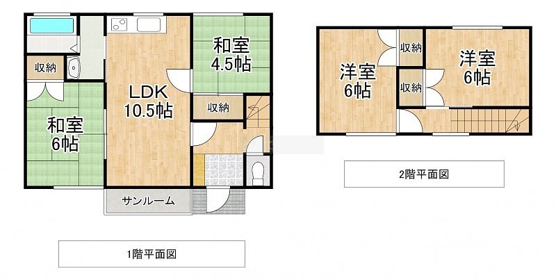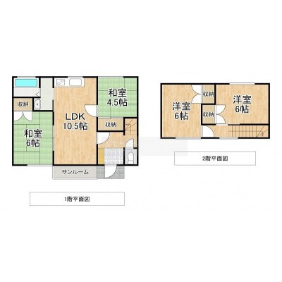 4LDK└ 1階:LDK10.5帖 和室6帖 和室4.5帖 / 2階:洋室6帖 洋室6帖