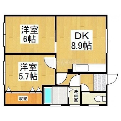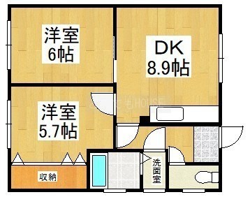 2DK(46.88m²)└ DK8.9帖 洋室6帖 洋室5.7帖