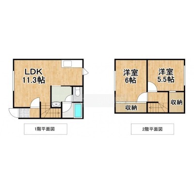 2LDK(58.17m²)└ 1階:LDK11.3帖 / 2階:洋室6帖 洋室5.5帖