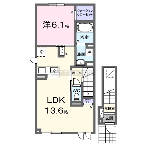1LDK(47.88m²)└ LDK13.6帖 洋室6.1帖