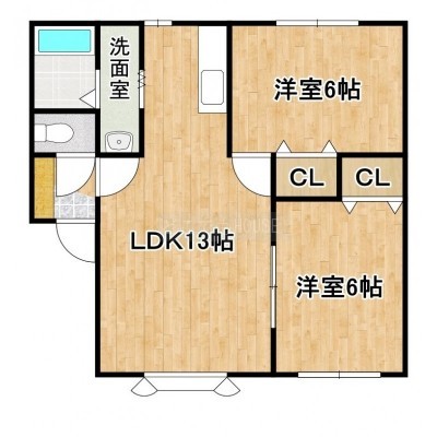 2LDK(45.36m²)└ LDK13帖 洋室6帖 洋室6帖