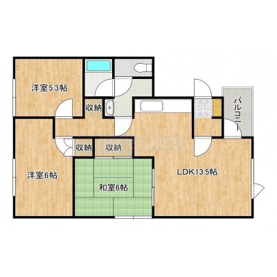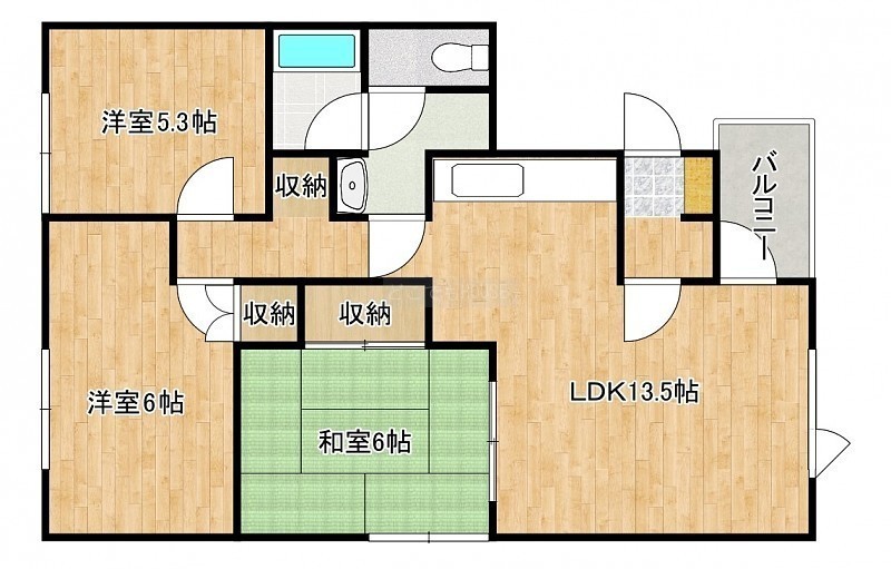 3LDK(70.12m²)└ LDK13.5帖 洋室6帖 洋室5.3帖 和室6帖