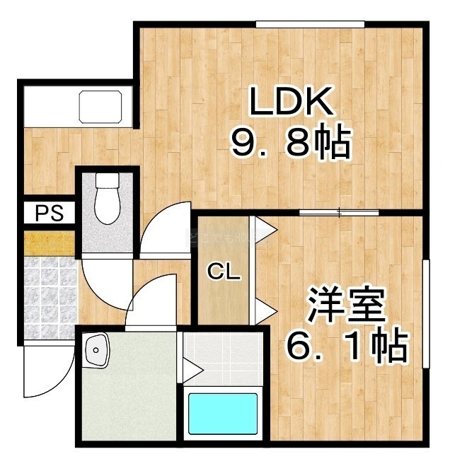 1LDK(37.67m²)└ LDK9.8帖 洋室6.1帖