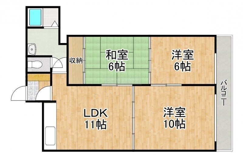 3LDK(61.91m²)└ LDK11帖 洋室10帖 洋室6帖 和室6帖