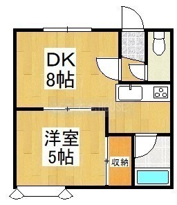 1DK(28.76m²)└ DK8帖 洋室5帖