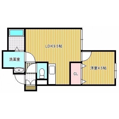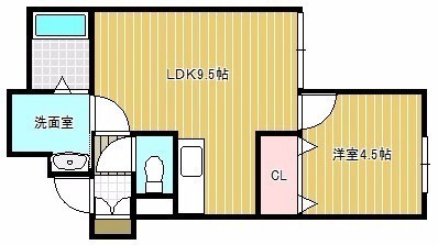 1DK(33.48m²)└ DK9.5帖 洋室4.5帖