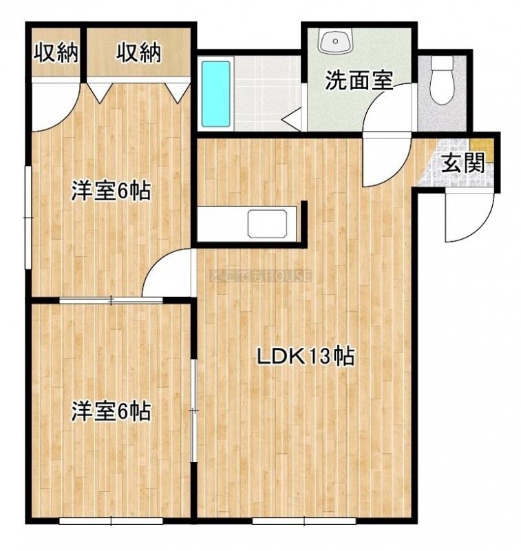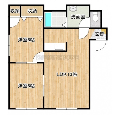 2LDK(51.97m²)└ LDK13帖 洋室6帖 洋室6帖