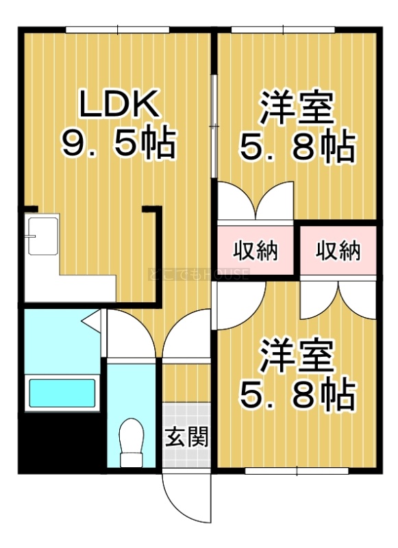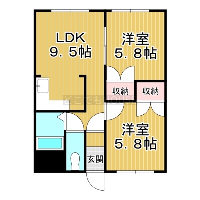2DK(44.58m²)└ DK9.5帖 洋室5.8帖 洋室5.8帖