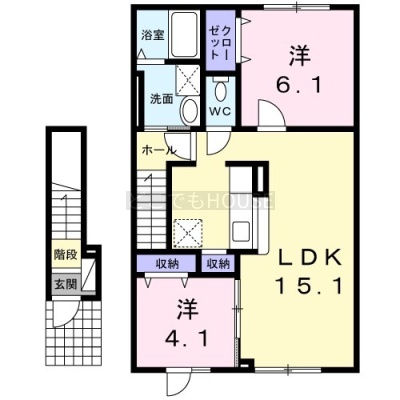2LDK(58.87m²)└ LDK15.1帖 洋室6.1帖 洋室4.1帖