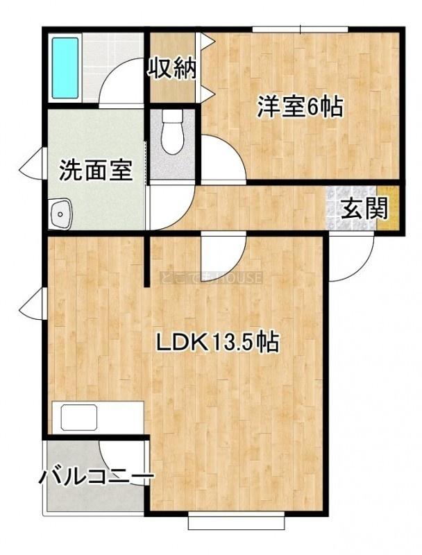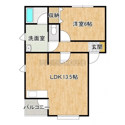 1LDK(44.57m²)└ LDK13.5帖 洋室6帖