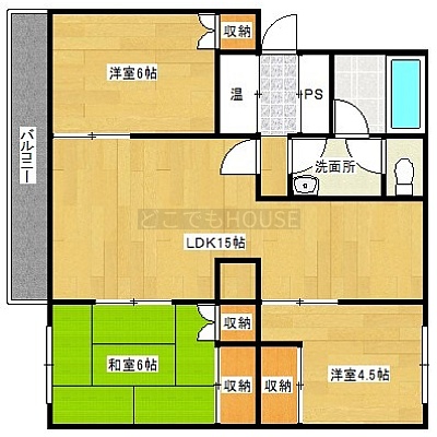 3LDK(69.48m²)└ LDK15帖 洋室6帖 洋室4.5帖 和室6帖