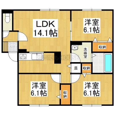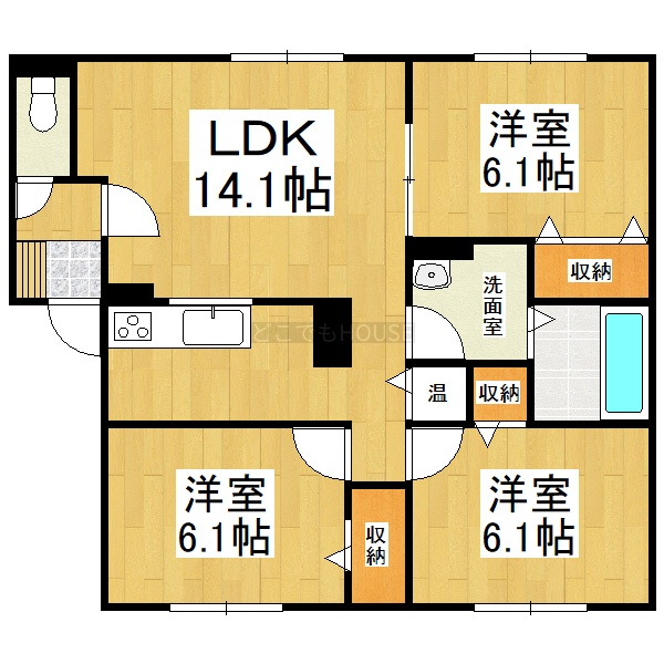 3LDK(73m²)└ LDK14.1帖 洋室6.1帖 洋室6.1帖 洋室6.1帖