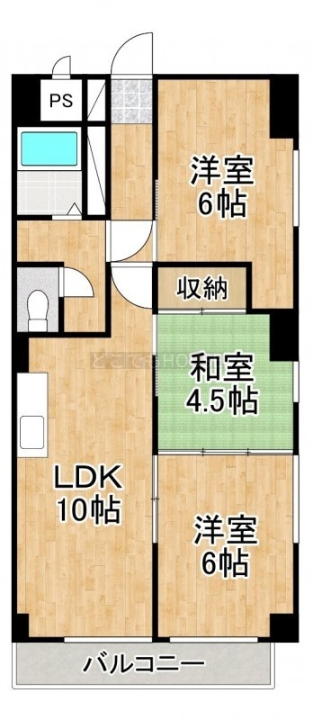 3LDK(63.3m²)└ LDK10帖 洋室6帖 和室4.5帖 洋室6帖
