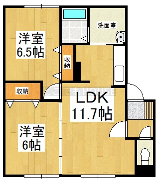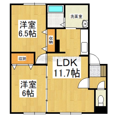 2LDK(53.98m²)└ LDK11.7帖 洋室6.5帖 洋室6帖