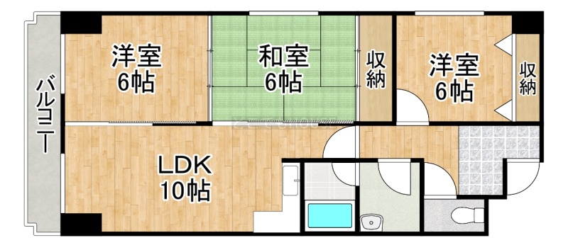 3LDK(69.42m²)└ LDK10帖 洋室6帖 洋室6帖 和室6帖