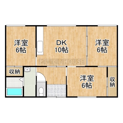 3DK(66m²)└ DK10帖 洋室6帖 洋室6帖 洋室6帖