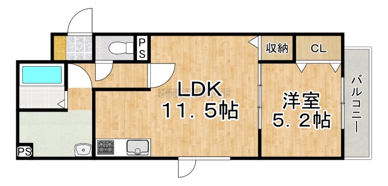 1LDK(42.85m²)└ LDK11.5帖 洋室5.2帖