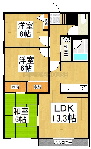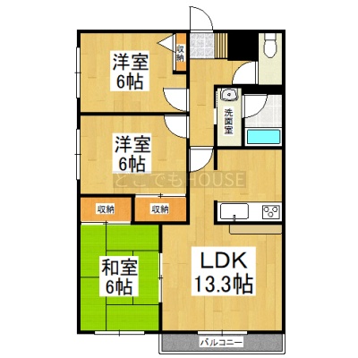 3LDK(65.05m²)└ LDK13.3帖 洋室6帖 洋室6帖 和室6帖