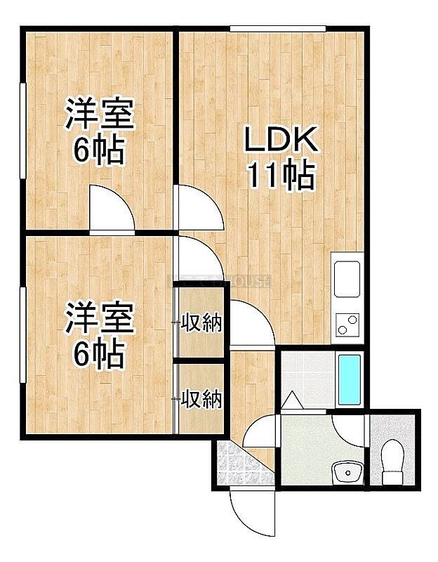 2LDK(51.3m²)└ LDK11帖 洋室6帖 洋室6帖