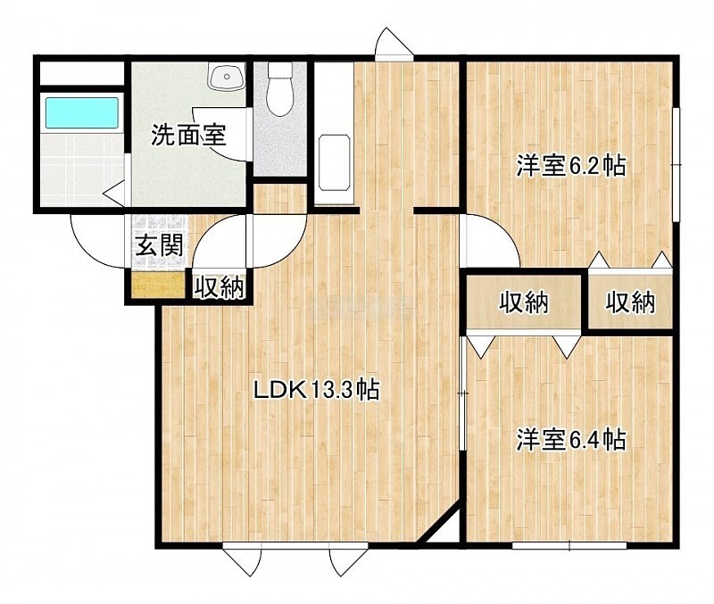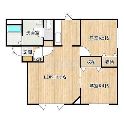 2LDK(55m²)└ LDK13.3帖 洋室6.4帖 洋室6.2帖