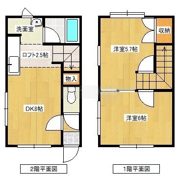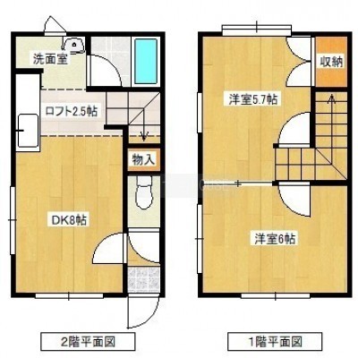 2DK(45.82m²)└ DK8帖 洋室6帖 洋室5.7帖 その他2.5帖