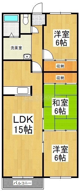 3LDK(73.3m²)└ LDK15帖 洋室6帖 和室6帖 洋室6帖