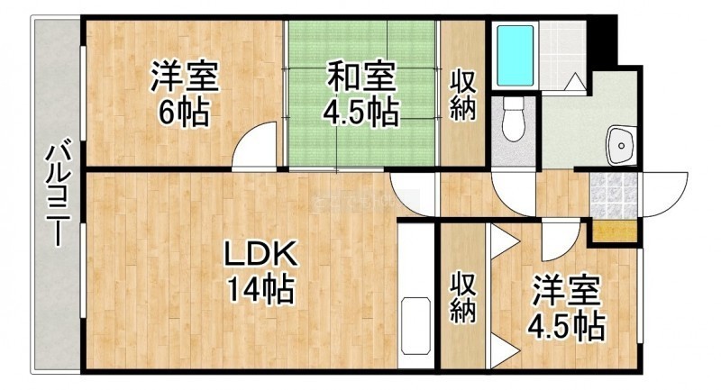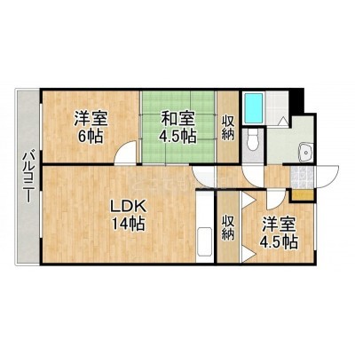 3LDK(62.4m²)└ LDK14帖 洋室6帖 洋室4.5帖 和室4.5帖
