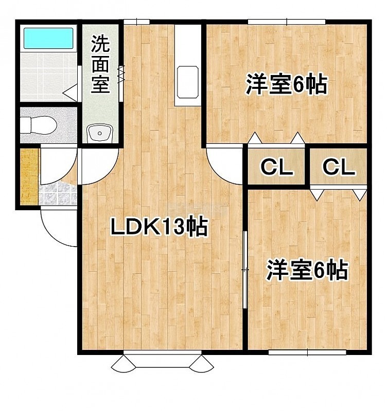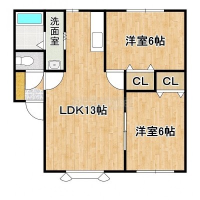 2LDK(45.36m²)└ LDK13帖 洋室6帖 洋室6帖