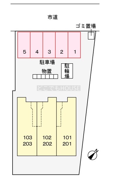 所在階/建物の階建 2階(203) / 地上2階建 総戸数 6戸 主要採光面 南東 構造 木造(2×4) 契約期間 2年間 更新料/更新手数料 2万2,000円 住宅保険 1万8,000円(2年間) 入居可能時期 2026年3月中旬 管理人 取引態様 仲介 物件No 設備・特徴 - 駐輪場