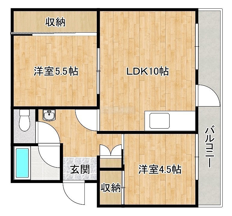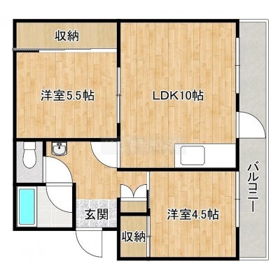 2DK(37.26m²)└ DK10帖 洋室5.5帖 洋室4.5帖