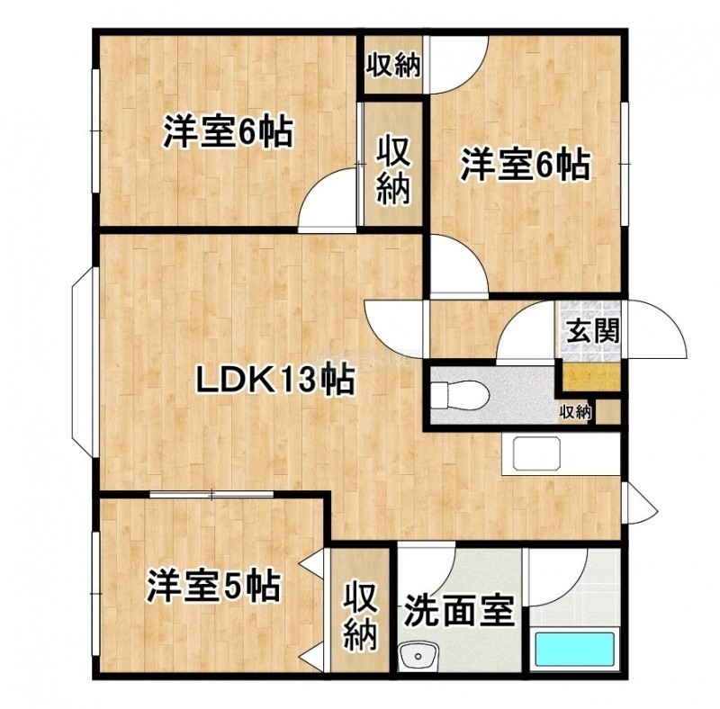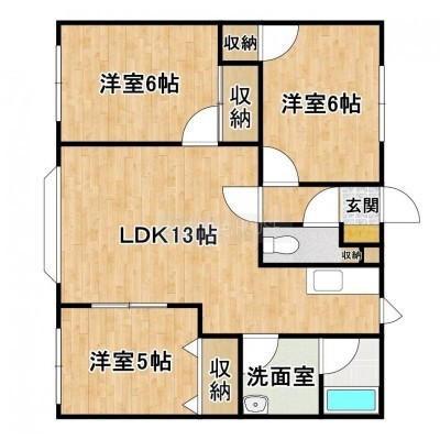 3LDK(62.1m²)└ LDK13帖 洋室6帖 洋室6帖 洋室5帖