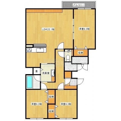 3LDK(99.73m²)└ LDK22.1帖 洋室8.3帖 洋室6.3帖 洋室6.3帖