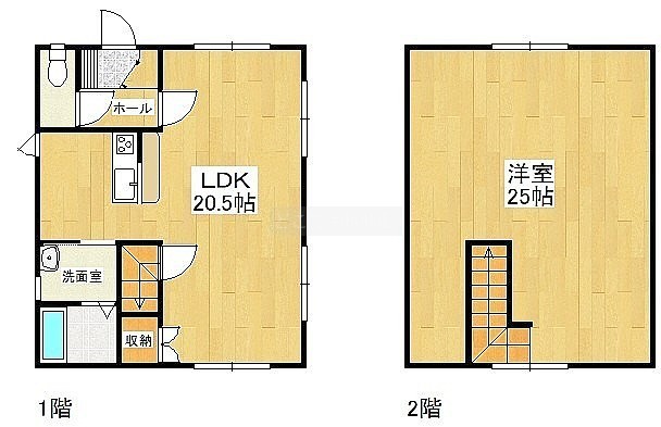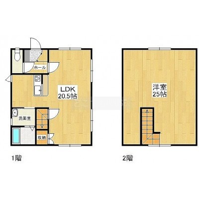 1LDK(93.67m²)└ 1階:LDK20.5帖 / 2階:洋室25帖