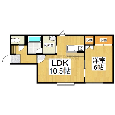 1LDK(38.47m²)└ 2階:LDK10.5帖 洋室6帖