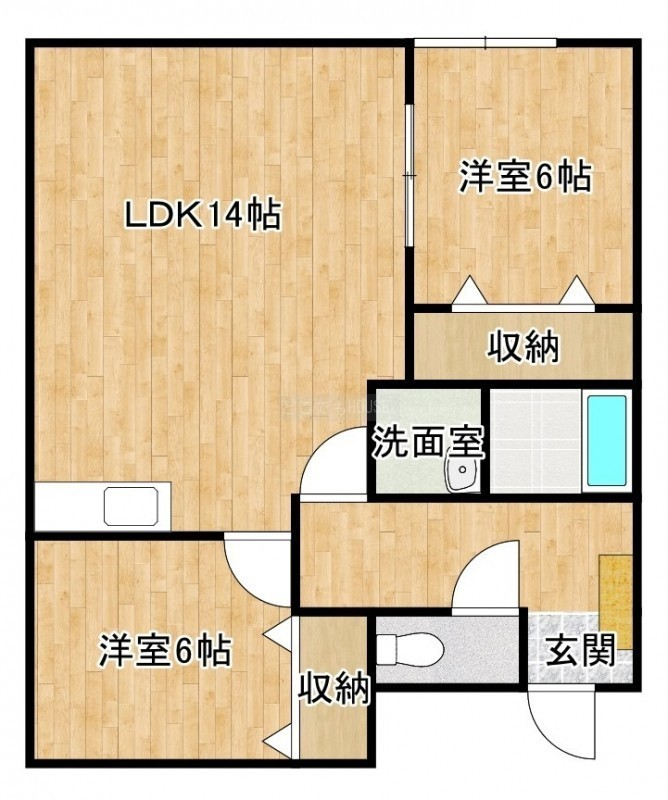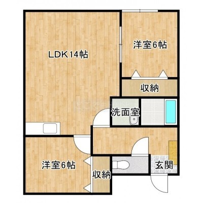 2LDK(60.88m²)└ LDK14帖 洋室6帖 洋室6帖