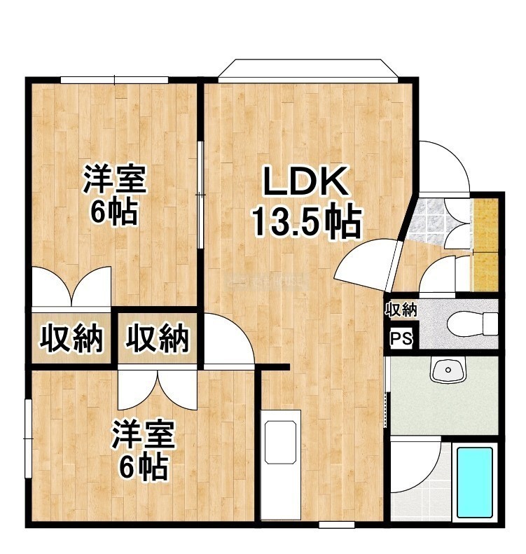 2LDK(53.14m²)└ LDK13.5帖 洋室6帖 洋室6帖