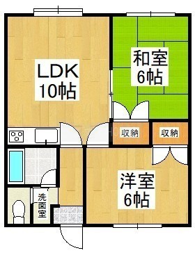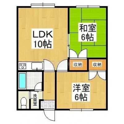 2DK(45.36m²)└ DK10帖 洋室6帖 和室6帖