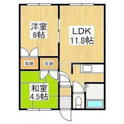 2LDK(43.06m²)└ LDK11.8帖 洋室6帖 和室4.5帖