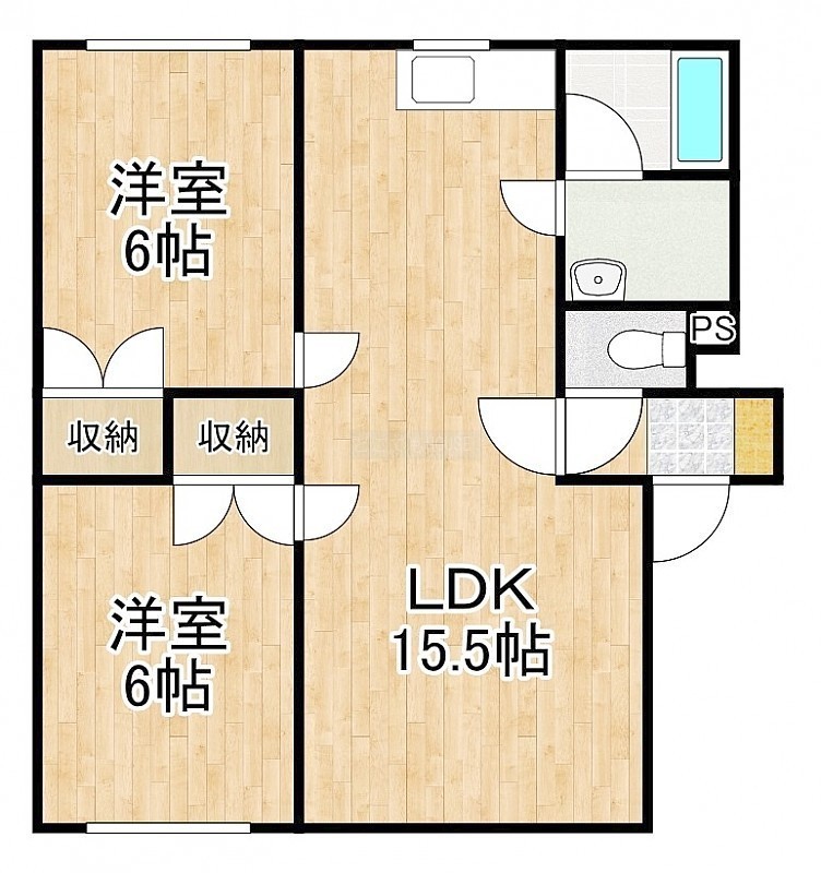 2LDK(50.67m²)└ LDK15.5帖 洋室6帖 洋室6帖